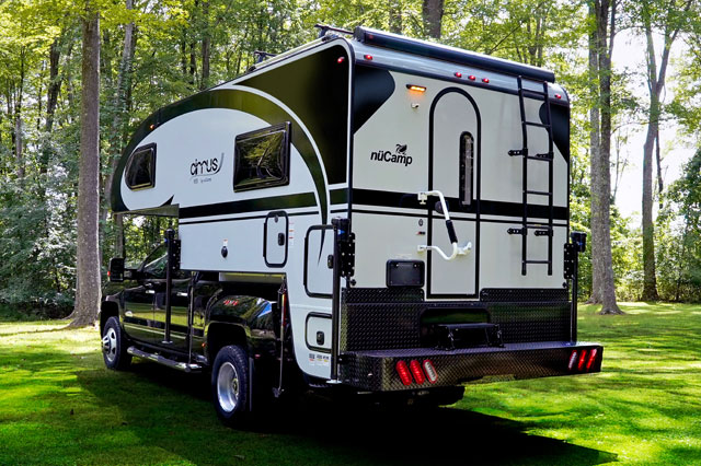 To contact nuCamp RV in Sugarcreek, Ohio, call 330-852-4811. To visit the Cirrus website, go to cirrus.nucamprv.com. For additional information, request a Cirrus truck camper brochure.