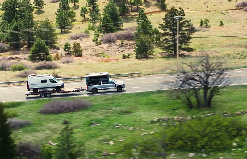 Above: Oh no they didn’t! Supertramp tows a Sprinter van behind a truck camper rig.