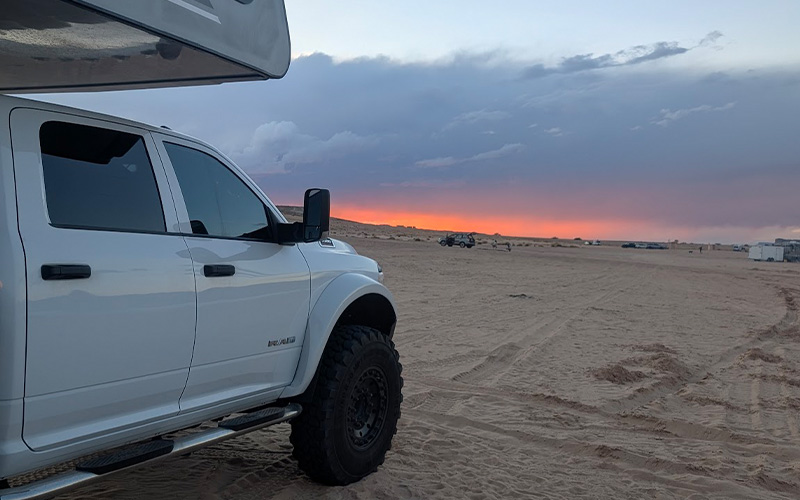 During a trip to Baja, I sought out remote sand beaches. I wasn’t able to air down my stock dual-rear-wheel tires enough without the tires rubbing together. I got stuck constantly.