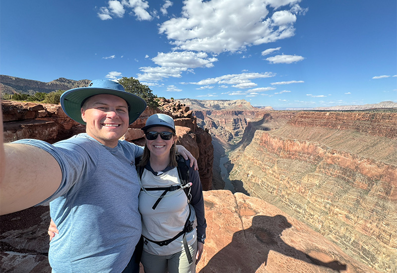 Adam and Val Zolyak overlooking the North Rim of the Grand Canyon.