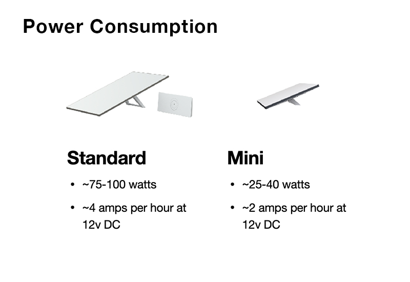 The Starlink Standard uses about 48 watts per hour, while the Mini uses just 24 watts per hour. A 150-watt solar panel getting moderate sunlight is plenty to power either dish. I like to use my Starlink on the sun’s schedule.