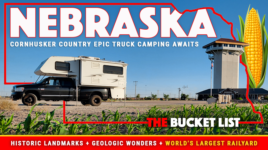 Thanks to our readers, I discovered there’s far more to this state than meets the eye. Nine experienced truck campers reveal a state packed with must-visit destinations. Whether you’re chasing Wild West history, marveling at the world’s largest rail yard, or exploring fossil formations, Nebraska rewards truck campers who dare to venture off the interstate.
