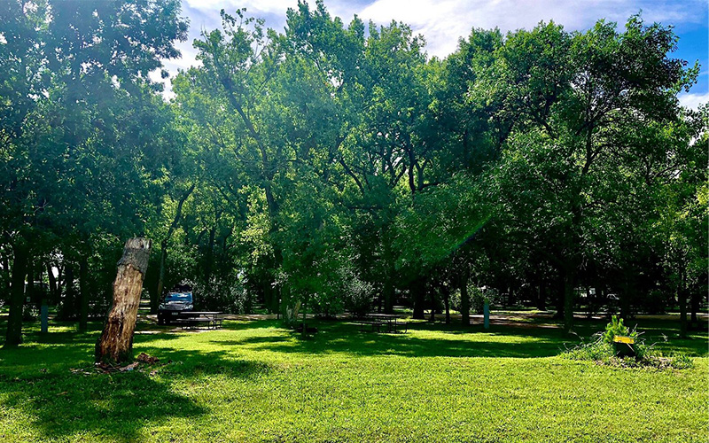 The US Forest Service campground is about 15 miles north of Crawford via gravel road. There’s a small fee of $15 per night to stay at one of the 12 sites. Each site offers sheltered picnic tables, fire rings, upright grills, and two accessible vault toilets. There is no water or electricity—a boondocker’s delight!