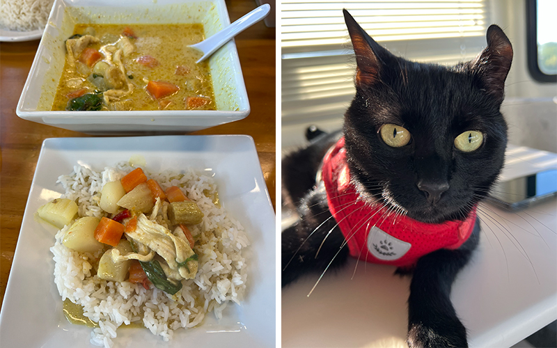 So, since we work on TCM during the week and drive on the weekends, we planned our Omaha visit for a Saturday. Matt and Molly suggested that we go to the Heartland of America Park around dark as the park has a lot of lights and a lot to enjoy at night. So, after driving that day, I found a Thai restaurant on Yelp right about a quarter mile from our parking spot. It was perfect and worked out really well.