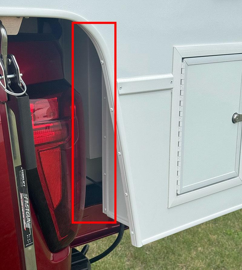 One of the most important features on the 2026 Northstar 850SC is the ability to leave the tailgate installed in the down position. This was made possible by tightening the depth of the removable side storage boxes creating a vertical slot (shown in the red box above) for the tailgate support cable. No more need to remove a fussy tailgate. Just leave it on, and go.