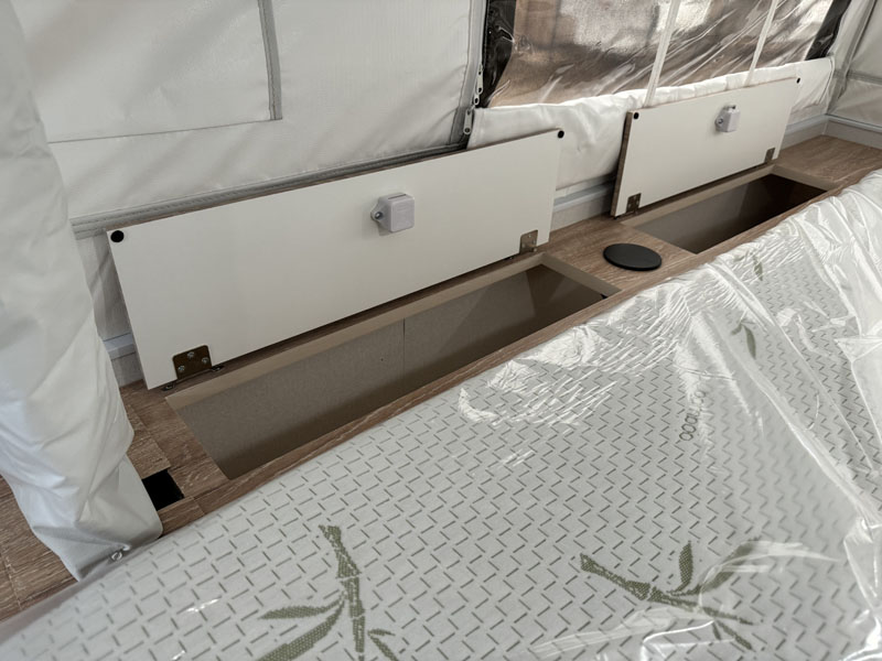 The GMAX 650 features Northstar’s SubZero insulation package with block foam in the walls and floor, a laminated insulated roof, and an insulated soft wall with a screened window. Folks are often surprised to hear that Northstar Campers are some of the warmest campers we’ve ever camped in. It’s true.