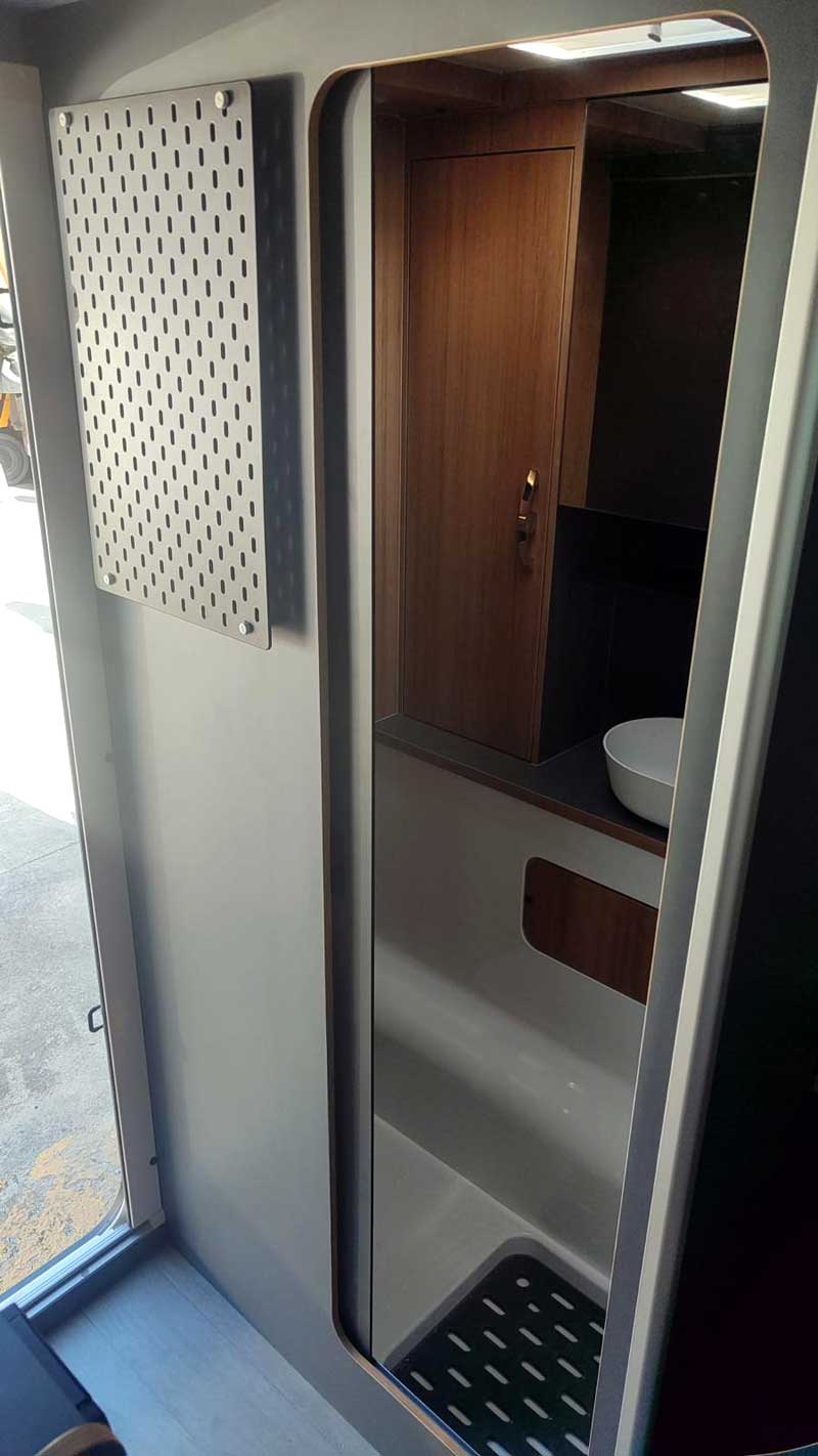 A more subtle change is the new wood bathroom door. Hotomobil USA told us that the new door functions better than the original design and adds a touch of warmth and elegance to the interior.