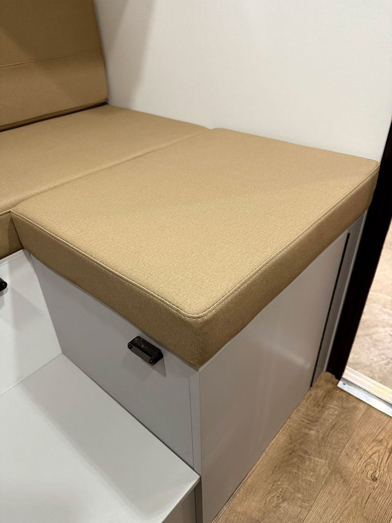 Once we built the initial structure for the Aquila, we started moving things and changing things. Once we had a prototype that felt right, we brought it to Elkhart and gathered feedback from dealers and media—even you guys. That led us to redesign the cabover to be either east-west or north-south, among other important tweaks. For a camper this size, it has one of the biggest U-shape dinettes in this price point.