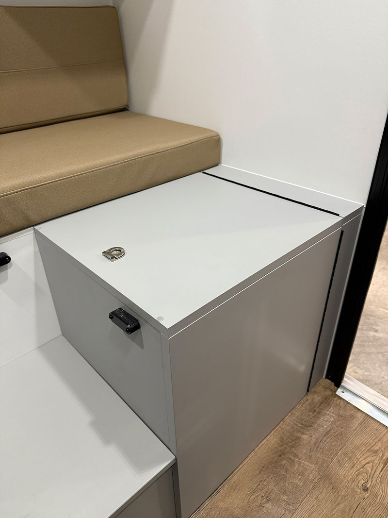 We tie into the structure of the cabinet face on the driver’s side, and the sidewall of the passenger’s side. You also get an extra cushion for the north-south bed extension.