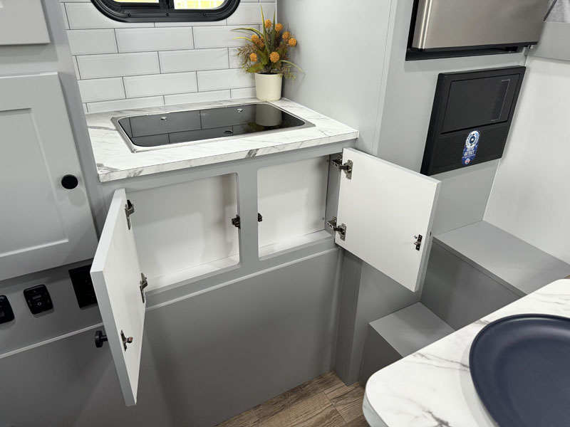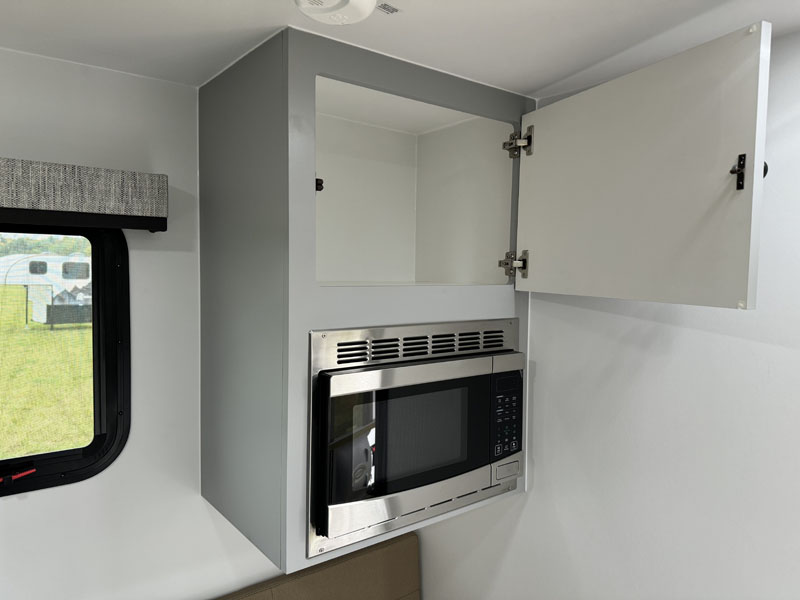 Funny enough, tweener is the best name we’ve heard for the growing segment of the camper market defined by (a) no walled bathroom, (b) a built-in cassette toilet in a hideaway cabinet, and (c) otherwise full-size camper features cabover to entry door. This wasn’t really a category before, but suddenly there’s several competitors battling it out in this tweener space.