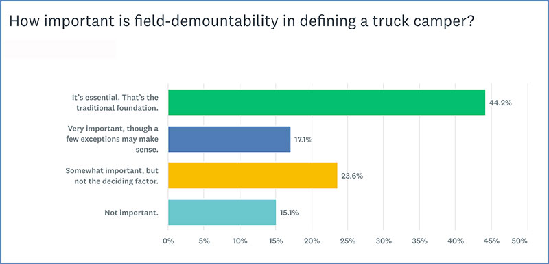 Taking the full scope of this survey into account, Truck Camper Magazine’s “If it doesn’t demount, it doesn’t count” definition will remain unchanged.