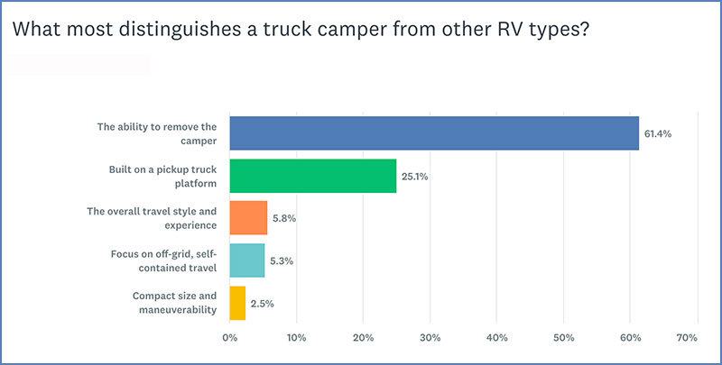 Question 3 forced survey participants to decide which of the named factors is the most important for distinguishing a truck camper from other RV types. In the real world, all of these factors are essential for truck campers, but which one is the most critical?