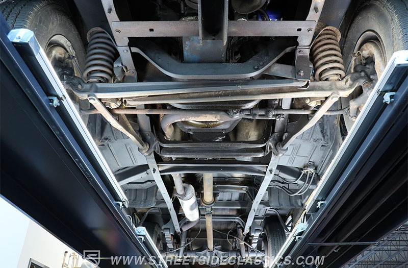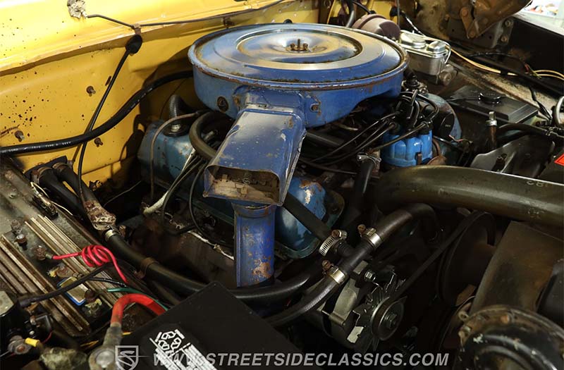 Under the hood is a 360 V8 paired to a four-speed manual transmission with just over 72,000 miles showing on the odometer. The undercarriage appears remarkably clean with little to no visible rust. That’s the kind of detail collectors love. Turn the key, grab the shifter, and cue the V8 soundtrack.