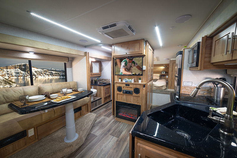 The fall incentive follows a year of continued product refinement at Host, including the introduction of the Center Kitchen Peninsula option (shown above) for the Mammoth and Yukon triple-slide models.